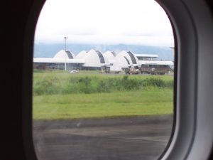 Nestled on the Imbo plan between mountains on both side (Burundi and DR Congo) on the shores of Lake Tanganyika about 10 kms outside of Burundi’s capital city of Bujumbura, Bujumbura International Airport is actually a very cool looking airport – somewhat resembling inverted cones. One of the nice things about this airport – in stark contrast to most other African airports that I have used – is that it is relatively hassle free. You don’t have to show your ticket to ten different people and no one is going to ask for bribes for anything. The interior is very airy but recent security upgrades have made it a lot less user friendly than it was in the past. In the past, friends and relatives would come to the airport and go up to the second floor restaurant/bar which overlooked the runway to wave hello/goodbye to arriving or departing passengers. A 10 foot wall with no windows now greets anyone who goes upstairs – all but rendering the restaurant/bar an afterthought. Positive changes include new x-ray machines to screen outgoing and incoming baggage. If you are departing, make sure you get there at least 1 hr and 15 minutes before the scheduled departure. They have a habit of closing the gate and not budging – regardless of your excuse! The departure gate has a small restaurant to buy a cup of coffee, a beer or a soft drink/juice, but not much else. There is a small "duty free" shop as well, but there is really nothing of great interest at all – perhaps some excellent Burundian coffee, but you can get that much cheaper in town. There is talk of them opening up a larger duty free store in both the departure and arrivals areas, but it seems senseless. The majority of flights connect through Nairobi or Addis Abbaba where there are excellent duty free shops with a large variety of merchandise and good prices. Overall, while the new security "improvements" have definitely subtracted from the airport’s overall charm, it is still a quaint little airport. Taxis to/from town should cost around 10,000 francs ($10 US). Porters are abound in the baggage retrieval area to help you bring them to your waiting vehicle or taxi and while the service is supposedly free, they expect a dollar or two for their services. If you knew how much they were paid per day, then you will gladly give them a little something.