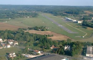 2006- the airfield had air traffic control & a fire brigade (Pompiers) until the Paris – Perigueux regional jet service ceased. Private jets & GA still use the airfield. The airfield is also host to glider flying from the grass on LHS of the runway and model aircraft flying on the extreme LHS of the photo. Photo taken from Grob 2 seater on LH baseleg to the grass.
