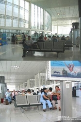 This airport is very much a reflection on the Philippines as a whole. As a whole, its very good, as an airport, not so good. Manila is a big SE Asian city, this airport is relatively big, but very fragmented. There two domestic terminals and they are a taxi ride apart. The New Domestic terminal used exclusively by PAL is new, clean cool and fresh.There are some franchised food outlets that are both good and cheap. The seating is steel benches that re-define uncomfortable and there’s not a lot of it. d expect to pay an airport security charge in cash in PHP before you get in. The staff are Filipino, that means not happy to be working, well you wouldn’t be either for the wages they get. The Old Domestic terminal is as the name suggests OLD. It caters for all other airlines. The check-in hall is small, cramped, crowded, hot, slow and uncomfortable. Handwritten blackboards announce which flight is checked in and where. Once into the main hall, things do improve slightly. There are good, cheap food outlets, a substantial meal can be had for about $2 (US) or less. Toilet facilities are just about acceptable. There is plenty of reasonable seating to be had, if not very spacious. Again it is hot, run down and clearly old, but not that bad. The Int terminal is relatively new but suffers from being small. There seems to be a thing about seats in this country, again there is limited seating, but it is a least comfortable. There are the usual food outlets, again quite good and cheap. BEWARE, on arrival you will be expected to stump up about 550php airport tax in cash, no cash=no entry. Embarcation cards are filled in and collected at the passport control which is notorious slow and without a sense of humour. Again beware, you will see that your flight is boarding VERY EARLY, maybe 2 hours before departure. DO NOT BE FOOLED BY THIS You will find yourself in a departure lounge that is small hot and without any facilities at all, save a toilet. It is hot and again the steel seating will make you very sorry that you bothered. Wait in the main building as long as possible, its not wonderful but infinitely better than the alternative. A new terminal building is ready for use sometime 2007 and must be an improvement. It would have been opened in 2006, but a large section of the roof collapsed and delayed the opening. This airport is very much a reflection of the Philippines, tries very hard, fails very miserably. Functional, it is about as good as it gets, it’s an airport you will be pleased to have left.